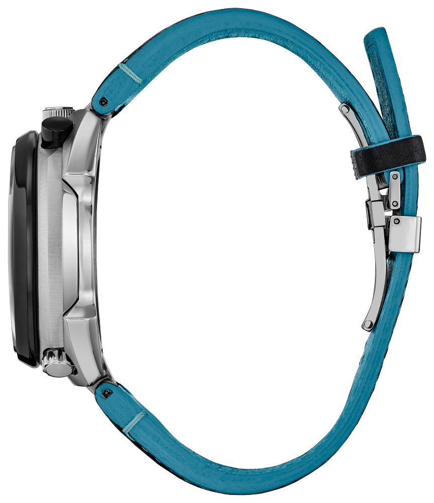 The limited-edition Promaster Tsuno Chrono Racer is the latest addition to our Promaster Land collection in a striking design inspired by Citizen’s racing roots. The distinctive chronograph features a unique light blue dial with red accents on a silver-tone stainless steel case. It has a hand-assembled movement and advanced features that have been updated to reflect a racing aesthetic, including a power reserve indicator resembling a fuel gauge, and the 60-minute chrono dial designed to look like a speedometer. The perforated black leather strap further emphasizes Citizen's racing roots. Other features include a tachymeter, an alarm, and a flat sapphire crystal. Like other watches in the Promaster line, it is water resistant up to 200 meters, and sustainably powered by any light with our Eco-Drive technology that never needs a battery. This collector’s watch comes in an exclusive Promaster tackle box. Calibre E210. Limited to 4,973 unnumbered pieces worldwide.